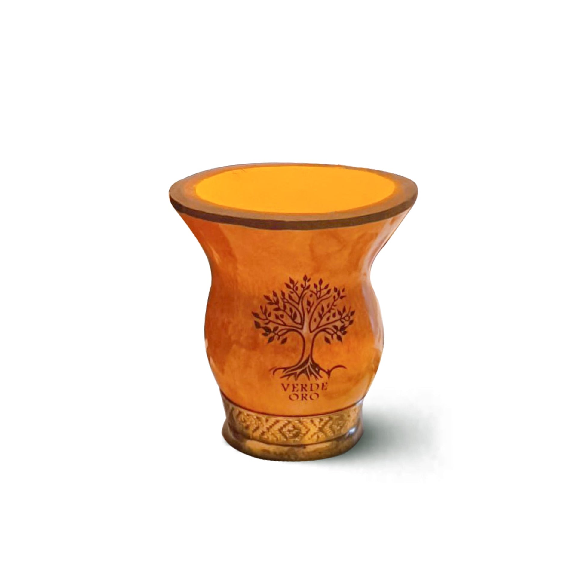 Its smooth, treated interior preserves the pure flavor of the erva-mate, while the reinforced base ensures long-lasting durability and stability during use. The carved Verde Oro emblem adds a distinctive touch, transforming the cuia from a simple vessel into a meaningful symbol of the Chimarrão tradition.